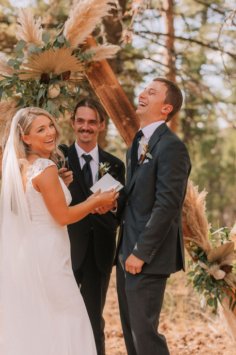 Morgan and Jared wed in the mountains of Helena, Montana surrounded by their closest friends and family. Morgan's vision of classic and simple elegance came together beautifully, combining the soft pinks of the bridesmaids dresses with green and while florals throughout the wedding perfectly offsetting the rustic setting of their woodsy outdoor ceremony and barn style reception. The couple shared a stunning golden hour photo session before rejoining their guests to celebrate on the dance floor of a century.