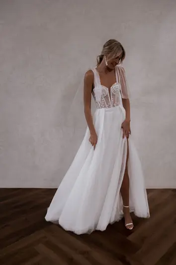 Sample gowns refer to dresses that are sold off-the-rack and not ordered in. These dresses have been used as the floor samples brides have tried on, but they have not been used outside of the store. Actual color and condition may vary from the image shown, book an appointment to see the complete inventory. Sample gowns are typically $1,500 and below.